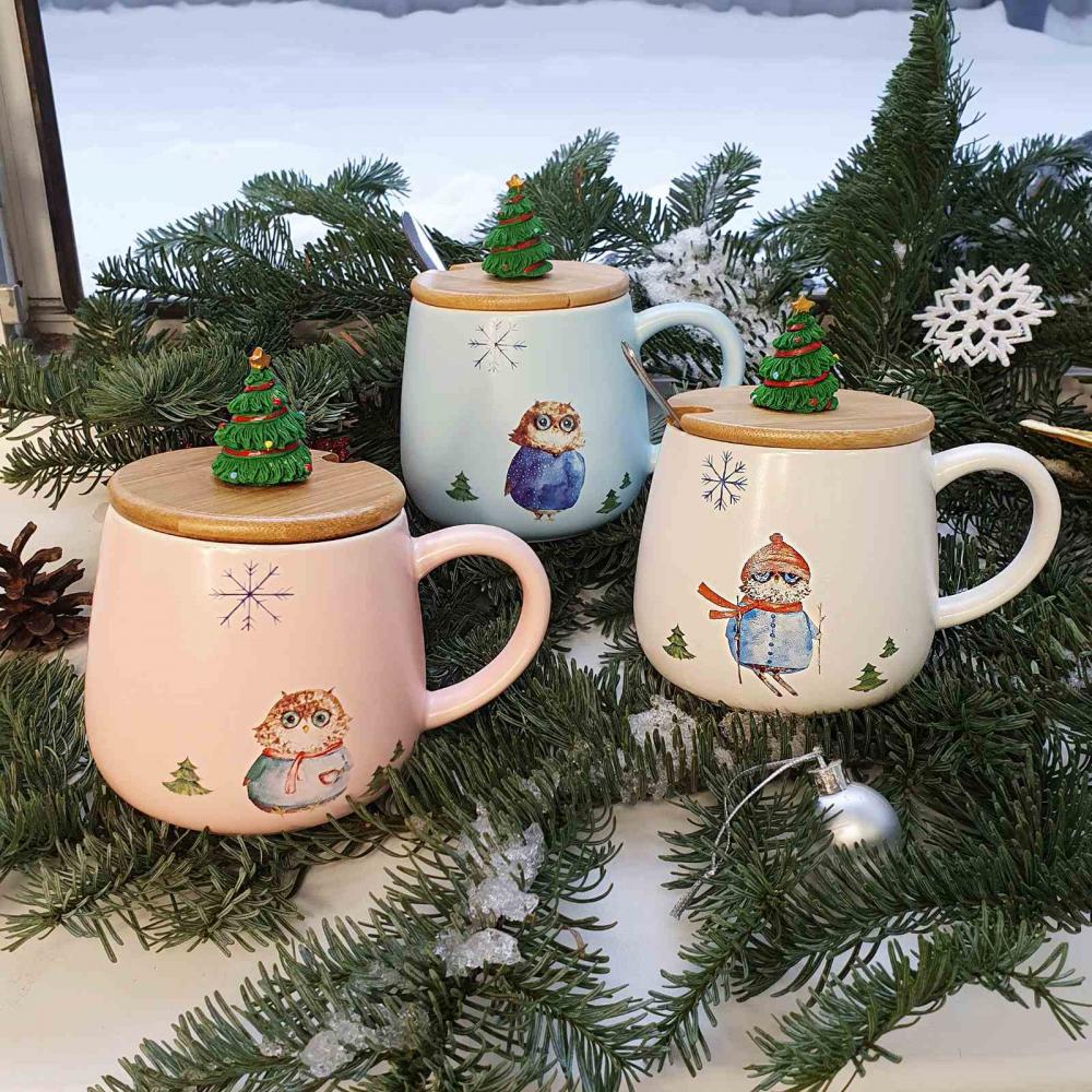 • кружка новогодняя с крышкой и ложкой (дизайн в ассортименте);
