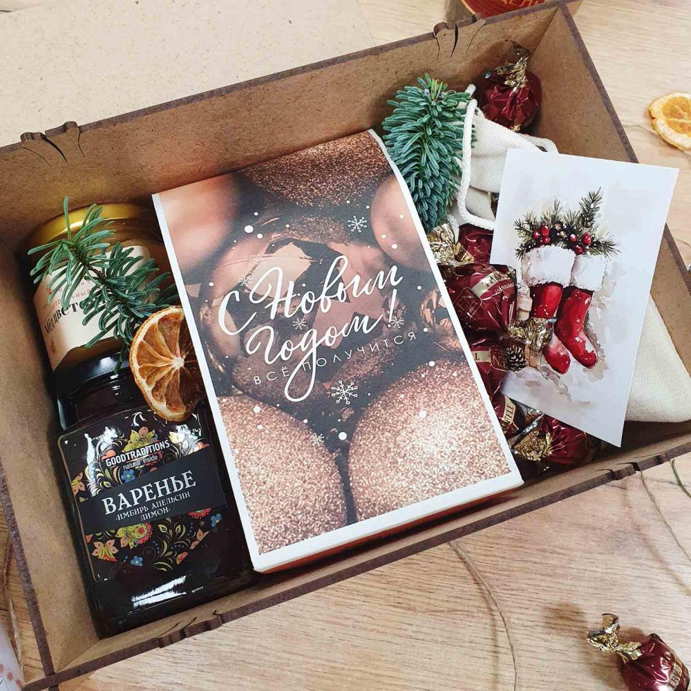 Новогодний подарок-посылка создаст праздничную атмосферу и настроениеyes  Этот подарочный набор  с ароматным чаем и сладким угощением станет отличным презентом для родных и близких.